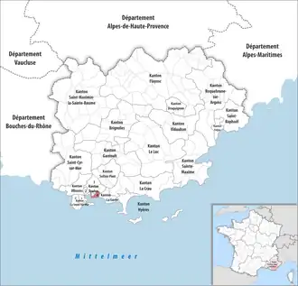![]() Lage des Kantons Toulon-4 im Département Var | |