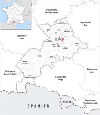 - ↑ Nur der südöstliche Teil der Gemeinde, der Rest verteilt sich auf die Kantone Toulouse-1, Toulouse-2, Toulouse-3, Toulouse-4, Toulouse-5, Toulouse-6, Toulouse-7, Toulouse-8, Toulouse-9 und Toulouse-10.
