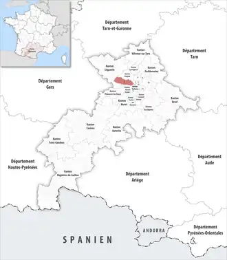 - ↑ Nur der westliche Teil der Gemeinde, der Rest verteilt sich auf die Kantone Toulouse-1, Toulouse-2, Toulouse-3, Toulouse-4, Toulouse-5, Toulouse-6, Toulouse-8, Toulouse-9, Toulouse-10 und Toulouse-11.