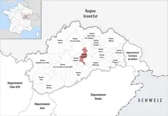 ![]() Lage des Kantons Vesoul-2 im Département Haute-Saône | |