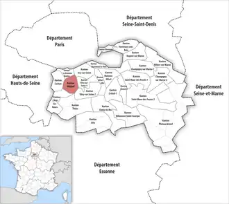![]() Lage des Kantons Villejuif im Département Val-de-Marne | |