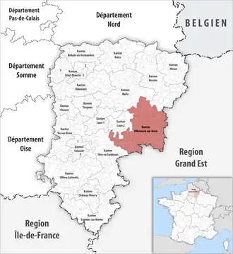![]() Lage des Kantons Kanton Villeneuve-sur-Aisne im Département Aisne | |