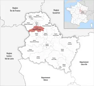 ![]() Lage des Kantons Villeneuve-sur-Yonne im Département Yonne | |