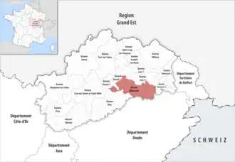![]() Lage des Kantons Villersexel im Département Haute-Saône | |