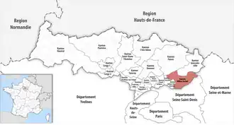 ![]() Lage des Kantons Villiers-le-Bel im Département Val-d’Oise | |