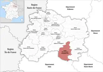![]() Lage des Kantons Vitry-le-François-Champagne et Der im Département Marne | |