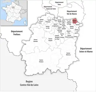 - ↑ Nur der nördliche Teil der Gemeinde, der Rest gehört zum Kanton Épinay-sous-Sénart.