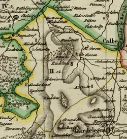 - ↑ Special-Atlas Des Königreichs Westphalen : bestehend aus acht Departements- und einer General-Charte: 7: Charte von dem Departemente Der Elbe des Königreichs Westphalen: Auf Höchsten königlichen Befehl entworfen und herausgegeben. Verlag des geographischen Instituts, Weimar 1812 UrMEL Thüringische Universitäts- und Landesbibliothek