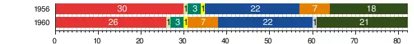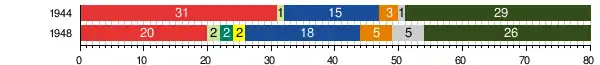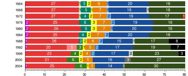 Bei den Wahlen von 1904 bis 2024 erreichten die angetretenen Parteien folgende Sitzzahlen:[8][3]