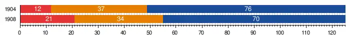 | 1908 | 70 | 34 | 21 | 125 | ||||||||