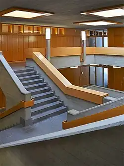 Im 2005 eingeweihten Ergänzungsbau befindet sich ein Mehrzwecksaal. Während der Schulwoche dient er als Mensa, der Saal wird aber auch für Versammlungen, Theateraufführungen und Konzerte genutzt und bietet maximal 230 Personen Platz.[14]