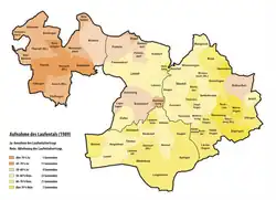 Die Integration des Laufentals in den ebenfalls reformierten Kanton Bern erwies sich als schwierig, was sich insbesondere anhand der Badener Artikel (1836) und des Kulturkampfes (1873–1880) zeigte, als die Kantonsregierung gegen romtreue katholische Priester vorging. Dennoch strebten die Laufentaler keine Trennung an, sondern die Wahrung ihrer Eigenheiten und mehr Selbständigkeit innerhalb des Kantons. In den ersten Jahren gehörte das Laufental administrativ zum französischsprachigen Bezirk Delémont, fühlte sich aber trotz gemeinsamer katholischer Mehrheitskonfession nicht angemessen vertreten.[9] Separatistische Bestrebungen hielten sich dennoch in Grenzen, wenn man von den Aktionen von Joseph Ferdinand Gerster absieht.[10] Bei der Revision der Berner Kantonsverfassung im Jahr 1846 wurde die Forderung nach einem eigenen Bezirk erfüllt. Politisch spielte er kaum eine Rolle, denn seine Vertretung in den kantonalen Behörden war gering und die stärkste Partei, die Katholisch-Konservativen (ab 1970 CVP), auf kantonaler Ebene wenig bedeutend.[9] In den folgenden Jahrzehnten zogen vermehrt Berner ins Laufental, darunter Beamte, Polizisten und Lehrer. Kulturelle und vor allem wirtschaftliche Beziehungen bestanden aber wie seit jeher überwiegend mit dem Raum Basel. Diese wurden insbesondere nach dem Bau der Jurabahn in den 1870er Jahren immer enger. Das Laufental entwickelte sich zu einem der wohlhabendsten Bezirke des Kantons, doch die Beziehungen zu Bern blieben distanziert.[11] Hundert Jahre später erlebte das Laufental einen markanten Bevölkerungsschub durch zugezogene Berufspendler, die in Basel und Umgebung arbeiteten.[12]