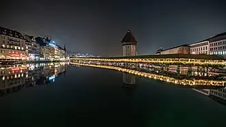 Die Kapellbrücke ist eine mittelalterliche gedeckte Holzbrücke über die Reuss in Luzern (Schweiz). Sie gilt als ein Wahrzeichen und eine der bedeutendsten Touristenattraktionen der Stadt. In ihrer Mitte steht der Wasserturm. Brücke, Turm und Bilderzyklus stehen auf der Liste der Kulturgüter in Luzern in der Kategorie A (national bedeutend).