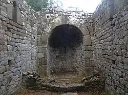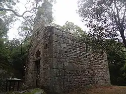 Leicht rosafarbener Granit und weißer Kalkstein erzeugen ein Farbspiel des Baumaterials, das einen Hinweis auf die stilistische Entwicklung zum polychromen Mauerwerk bildet. Die Ruine der Kapelle vom Ende des 9. oder Anfang des 10. Jahrhunderts ist möglicherweise eine Herrenstiftung. Beachtenswert ist der große Halbkreisbogen der Chorwand mit seinen sorgfältig behauenen Keilsteinen.