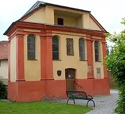 Die Kapelle besteht aus einem um 1725 erbauten Langhaus, deren Wände mit Pilastern gegliedert sind. An der Nordostwand befindet sich in der Mitte ein Risalit mit dem Portal. Ihm gegenüber nach Südwesten steht der halbrund geschlossene Chor, der ursprünglich zu einer um 1690 errichteten Kapelle gehörte. Die Innenräume des Langhauses und des Chors sind mit Flachdecken überspannt. Ein Epitaph für den 1561 gestorbenen Jakob Henrichmann wird Hans Daucher zugeschrieben.