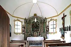 Im Inneren ist die Kapelle ein einschiffiger Saalbau.