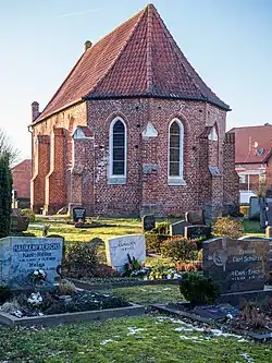 Die gotische Backsteinkapelle wurde 1456 errichtet, verfiel aber im 16. Jahrhundert. Ab 1623 wurde sie wiederhergestellt und erhielt dabei größere Fenster. Große Teile der äußersten Backsteinschicht wurden erneuert, ebenso die Innenausstattung, die großenteils aus dem 17. und 18. Jahrhundert stammt.