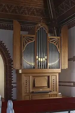 Für die Orgel war von Planungsbeginn an keine eigene Empore vorgesehen, so dass schon die erste Orgel, die Spende eines Kurgastes, direkt an der Westwand platziert wurde. Die heutige Orgel steht abgesetzt auf der rechten Seite des Altars. Sie wurde 1999 von der Firma Boogaard Orgelbau in Rijssen mit folgender Disposition gebaut:[6][7]