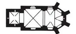 Der heutige Bau stammt aus der Zeit der Renaissance. Er ist einschiffig und einjochig. Der Chor ist einjochig mit einem 3/6 Schluss. Im Westen befindet sich ein Turm.
