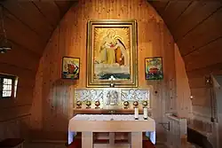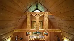 Im Innenraum ist die Decke der Kapelle von der Form gesehen ähnlich einem Schiffsrumpf gestaltet.