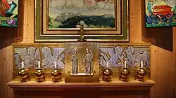 Auf dem Altarbild ist die gekrönte Muttergottes mit dem Jesukind und der hl. Therese von Lisieux dargestellt. Es ist auch Ankündigung der hl. Theresia bildlich dargestellt, wenn sie in den Himmel komme, werde sie Rosen auf die Erde streuen. Das Altarbild wurde von der Benediktinerschwester Dorothea Brockmann aus München gemalt.
