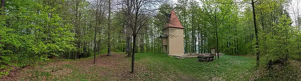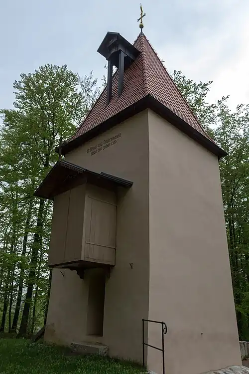 - ↑ Infotafel an der Kapellenruine, siehe Bildergalerie