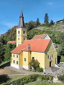 • Katholische Pfarrkirche Kapfenstein hl. Nikolaus steht in einer Hanglage südlich unterhalb des Schlosses.
