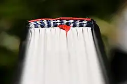 Das Kapitalband ist das kleine, farbige Bändchen, das bei Bucheinbänden an der Ober- und Unterkante des Buchrückens angeklebt ist.