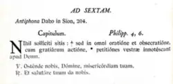 Als Kapitel (lat. capitulum ‚Abschnitt‘, wörtlich ‚Köpfchen‘) wird im Stundengebet die kurze Lesung in den Tagzeiten bezeichnet. Diese wird beim Gebet in Gemeinschaft nach dem Psalmengebet vom Hebdomadar oder auch von einem Lektor vorgetragen, es schließt sich das Responsorium an, in den kleinen Horen der Versikel.