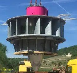 Mehrere nebeneinander installierte VLH-Turbinen in der Nähe von Grenoble.
