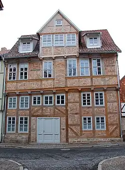 Das zweigeschossige Fachwerkhaus entstand in seinem Kern um 1700. Im Erdgeschoss befindet sich ein Zwischengeschoss. In der Zeit um 1800 wurde das Gebäude im Stil des Klassizismus umgebaut. Die Fensterfaschen waren mit Stuck gestaltet. Darüber hinaus bestanden massive Sohlbänke.
