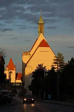 Teile des mittelalterlichen Baus der Minderbrüder wurden mit Bauteilen um 1330 ergänzt, Westlich wurde mit einem Dachreiter ergänzt. Um 1483 wurde ein spätgotischer Nordturm aufgesetzt.