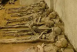 Unter der Kirche befindet sich die Kapuzinergruft. Hier wurden bis zum Ende des 18. Jahrhunderts Ordensbrüder und Förderer des Ordens bestattet. Durch ein besonderes Belüftungssystem und die Trockenheit der Räume wurden die Körper mumifiziert; von den fast 200 hier Beigesetzten sind die Mumien von 24 Mönchen und 50 Laien noch heute erhalten.[1] Der älteste Körper stammt aus dem Jahr 1658. Zu den wichtigsten hier bestatteten Persönlichkeiten zählen der Architekt Franz Anton Grimm sowie der Pandurenführer Franz von der Trenck, der auf der Festung Špilberk ums Leben kam und dem Kloster ein Vermögen von 4000 Gulden vermachte.