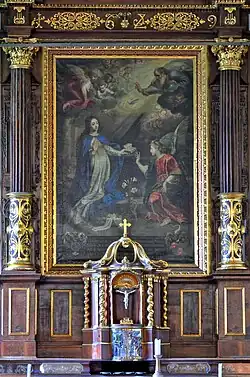 Bei diesem Bild Mariä Verkündigung handelt es sich um ein Gemälde des flämischen Malers Gerard Seghers (1591–1651). Es wurde 1624 gemalt und dem Kloster 1643 von Ludwig von Roll gestiftet. Die „Solothurner Verkündigung“, entstanden unter dem Einfluss von Caravaggio und Rubens, zeigt Maria im Zwiegespräch mit dem Erzengel Gabriel. Der Kunsthistoriker Georg Carlen schreibt in der Festschrift zum 400. Jubiläum des Klosters: „Das Bild vereinigt nordische Innigkeit in der häuslichen Szene mit barockem Impetus rubenscher Prägung im himmlischen Gebrause. Ein italienischer Zug manifestiert sich im raffaelesken Engel.“[41] Die hohe Wertschätzung des Bildes bei den Schweizer Kapuzinern zeigt sich darin, dass drei Kopien erhalten geblieben sind, die um 1650 als Seitenaltarbilder von Kapuzinerkirchen entstanden.[42]