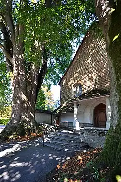 Die beiden grossen Linden vor dem Eingang zur Kirche sollen nach mündlicher Überlieferung um 1809 gepflanzt worden sein und gehören damit zu den ältesten Bäumen der Stadt Solothurn. Bei den Renovationsarbeiten um die Mitte des 20. Jahrhunderts wurde festgestellt, dass ihre Wurzeln bis zum Altar reichen.[54]