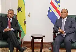 - ↑ Presidente da República realiza Visita de Estado a São Tomé e Príncipe, e, em paralelo, a Primeira Presidência na Diáspora africana - „Staatspräsident führt Staatsbesuch in São Tomé und Príncipe und zeitgleich ersten der geplanten Präsidialbesuche bei der kapverdischen Diaspora in Afrika“, Mitteilung vom 8. Juli 2024 des kapverdischen Präsidialamtes, abgerufen am 2. Februar 2025