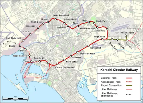 ![]() Vorschlag für den Ausbau der Karachi Circular Railway | |||||||||||||||||||||||||||||||||||||||||||||||||||||||||||||||||||||||||||||||||||||||||||||||||||||||||||||||||||||||||||||