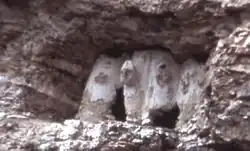 Insgesamt gibt es drei verschiedene Figurengruppen aus unterschiedlichen Zeiten an der Felswand. Auf welche Weise die Sarkophage und die Toten auf die unzugänglichen Felsvorsprünge gelangt sind, kann bisher noch nicht eindeutig nachgewiesen werden. Am wahrscheinlichsten ist die Theorie, dass ein Felsband zu den entsprechenden Stellen führte; um die Begräbnisstätte vor einer Zerstörung durch die Spanier zu bewahren, könnte dieser Pfad zerstört worden sein.