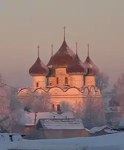 Blick über Kargopol mit der Christi-Geburt-Kathedrale (links) -