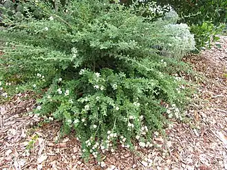 Es werden kleine, achselständige Blütenstände, Blütengruppen gebildet. Die kleine, zwittrige, duftende Blüte ist zygomorph mit doppelter Blütenhülle. Der kleine, vierteilige Kelch ist behaart. Die weißen Kronblätter sind in einer kurzen, schmalen Röhre mit oft gelbem Schlund verwachsen und die zweilippigen 5 Lappen bilden eine Blüte mit bis 12 Millimeter Durchmesser aus.[2] Die 4 Staubblätter sind didynamisch. Der Fruchtknoten ist oberständig mit kurzem Griffel.