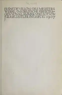- François Villon: Des Meisters Werke. Ins Deutsche übertragen von K. L. Ammer. Zeitler, Leipzig 1907 online. Neu aufgelegt 1918 und, unter dem irreführenden Titel Balladen, nochmals 1930. Nach dem Zweiten Weltkrieg erschien es im Reclam-Verlag in Leipzig unter dem Titel Die sehr respektlosen Lieder des François Villon und wurde etliche Male nachgedruckt.
