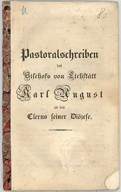 Karl August Graf von Reisach (* 6. Juli 1800 in Roth bei Nürnberg; † 22. Dezember 1869 in Contamine-sur-Arve, Département Haute-Savoie, Frankreich) war Bischof von Eichstätt von 1836 bis 1846, Erzbischof von München und Freising von 1846 bis 1856 und schließlich Kurienkardinal.