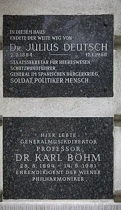 - ↑ Inschrift Deutschordenshof, Singerstraße: Karl Böhm 1957 (abgerufen am 11. Juni 2014).