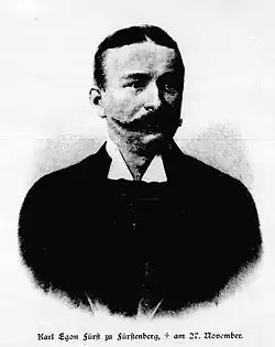 | Karl Egon III. | Fürst zu Fürstenberg (mediatisiert) 1892–1896 | Max Egon II. |