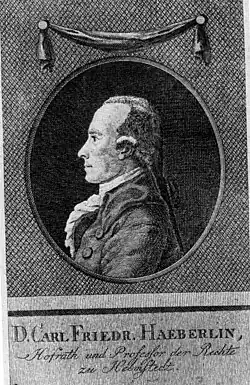 - Karl Friedrich Häberlin in Meyers Konversations-Lexikon, 4. Auflage Leipzig 1885–89 Bd. 7, S. 984.