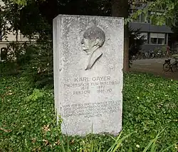 - Der Bildhauer Karl Kiefer schuf das Denkmal für Karl Gayer, das 1920 im Garten der Forstlichen Versuchsanstalt in München aufgestellt wurde.[2] Heute befindet sich das Denkmal im Salinenhof der Universität München, wo es zugleich an die forstwissenschaftliche Lehre und Forschung an der Universität von 1878 bis 1992 erinnert.