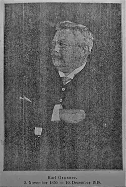 - Heinrich Seeling: Karl Grosser †. In: Deutsche Bauzeitung, 53. Jahrgang 1919, Nr. 1/2, (vom 4. Januar 1919), S. 9–11.
