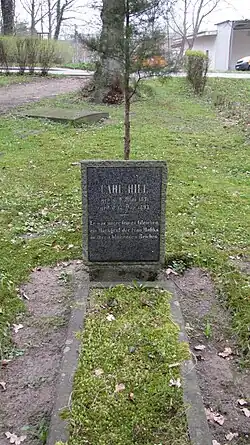 Seinen Lebensabend in Freiburg im Breisgau zu verbringen, konnte Hill nicht verwirklichen. Die Verschlimmerung seines Nervenleidens brachte ihn zurück nach Schwerin, wo er sich der Pflege in der Heilanstalt Sachsenberg anvertraute. Am 12. Januar 1893 starb der Sänger in geistiger Umnachtung in der Heilanstalt Sachsenberg und wurde auf dem dortigen Friedhof begraben.[1] Die auf seinem Grabstein angebrachte Inschrift gibt auch einhundert Jahre später noch Kunde von einer großen stimmlichen Begabung: Er war unter seines Gleichen, ein Markgraf der Frau Musika in ihren blühenden Reichen.