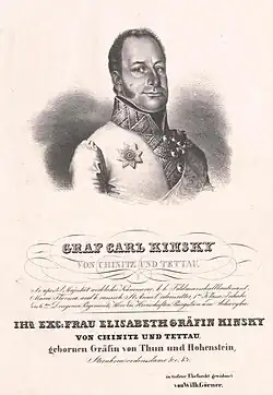 - Constantin von Wurzbach: Kinsky von Wchinitz und Tettau, Karl Graf. In: Biographisches Lexikon des Kaiserthums Oesterreich. 11. Theil. Kaiserlich-königliche Hof- und Staatsdruckerei, Wien 1864, S. 298 (Digitalisat).