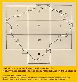 Die kartographischen und naturwissenschaftlichen Arbeiten auf dem Gebiet Böhmens wurden 1864 (Beschluss vom 10. April 1864 des Comités für die naturwissenschaftliche Landesdurchforschung von Böhmen) unter der Leitung von Karl Kořistka begonnen und bis 1878 fortgeführt. Sie beinhalteten folgende Teilbereiche:
